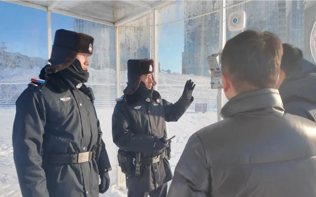 “冰上项目施工,要注意用电安全,坚决杜绝私拉乱接现象。”在道外区冰雪项目建设工地,航运分局民警针对冬泳暖房电路铺设情况,向施工人员提醒。