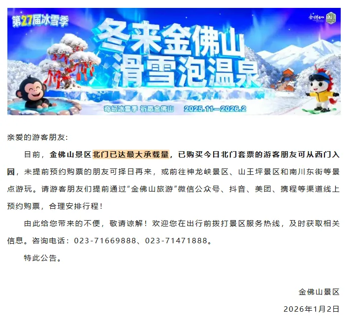 限流!闭园!别跑空!重庆三大热门冰雪景区发提醒