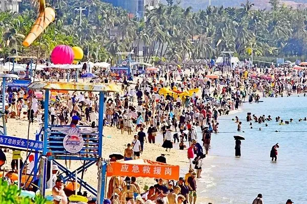 2026年1月1日,元旦假期第一天,海南三亚大东海,游客如潮。阳光、沙滩、大海,吸引中外游客前来休闲度假过冬。