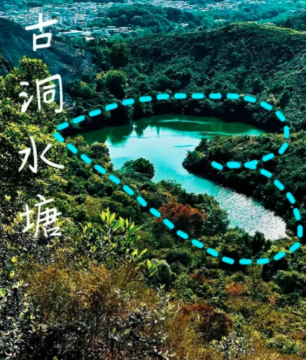 古洞水塘位于香港新界北部,行山路线轻鬆易行,沿途是石屎路,而且有树荫遮挡,全程大约只需60分钟,远足新手也能轻松鬆登顶。这裡最著名的景点是被称为“港版心形湖”的湖泊,独特的心形轮廓吸引无数行山人士前来拍照打卡。
