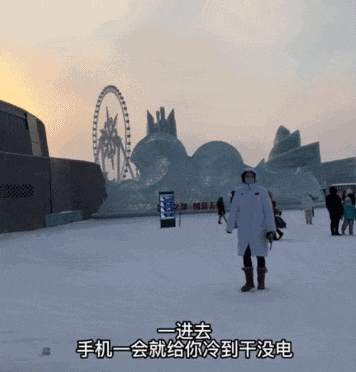 玩景点,太厚的衣服同样会影响体验感。 穿着里三层外三层的保暖衣物,打雪仗、玩项目仿佛瞬间穿越成了《城市之间》里穿着充气相扑服的笨拙选手 穿少了,玩的时候或许不觉得冷,甚至还会出点汗。但只要停下来,又会被松花江的寒风迅速吹透。
