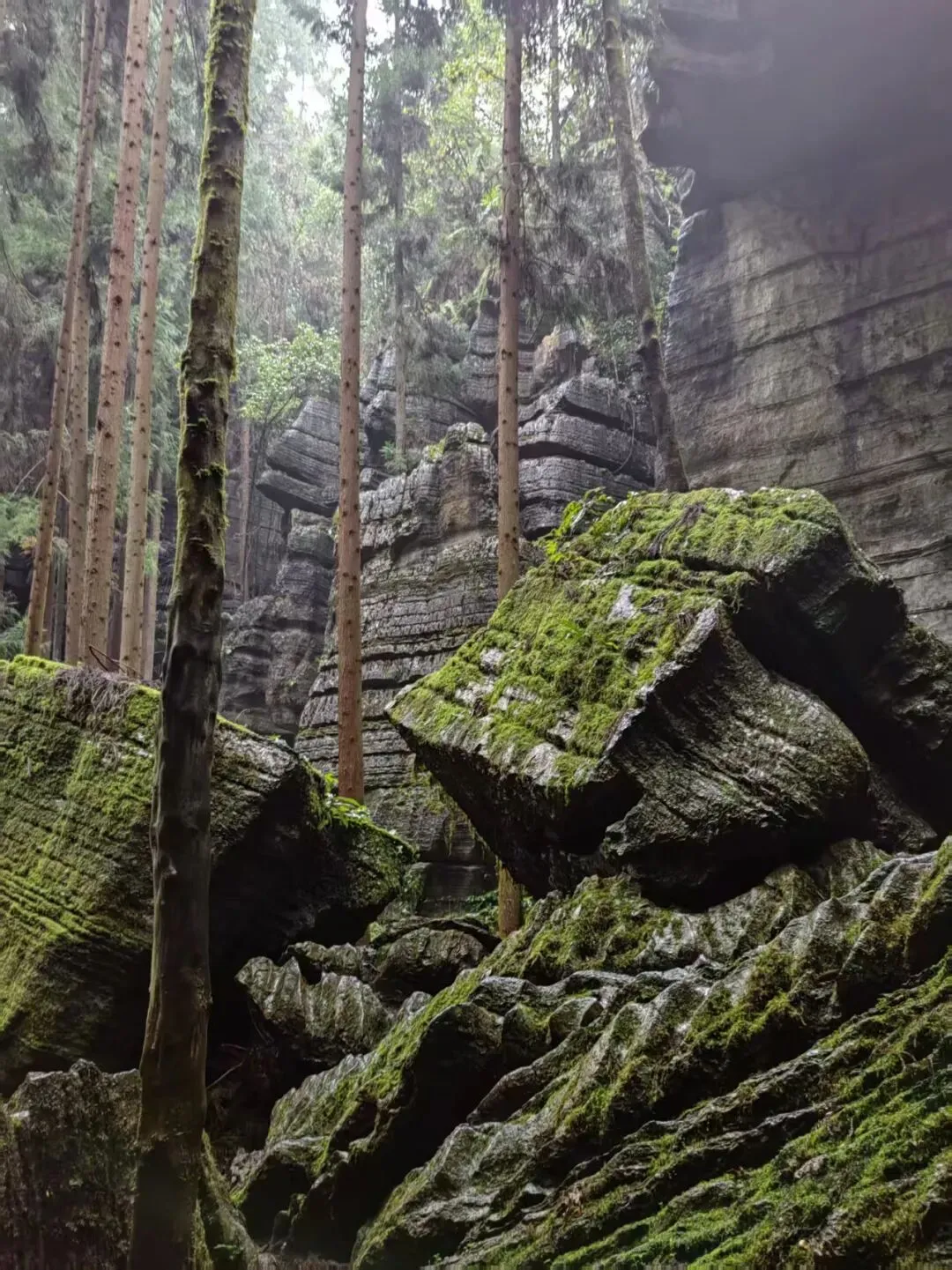 - 🔸梭布垭石林:4.6亿年的奥陶纪石林,像座远古迷宫,核心区温度仅16℃,是天然的避暑“空调房”。