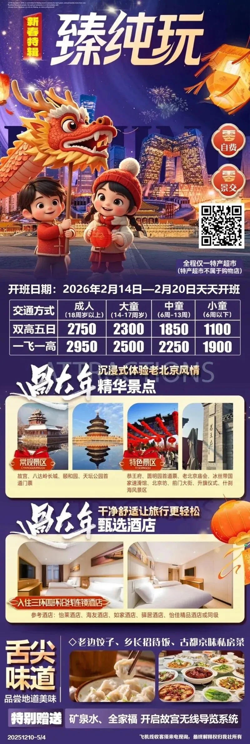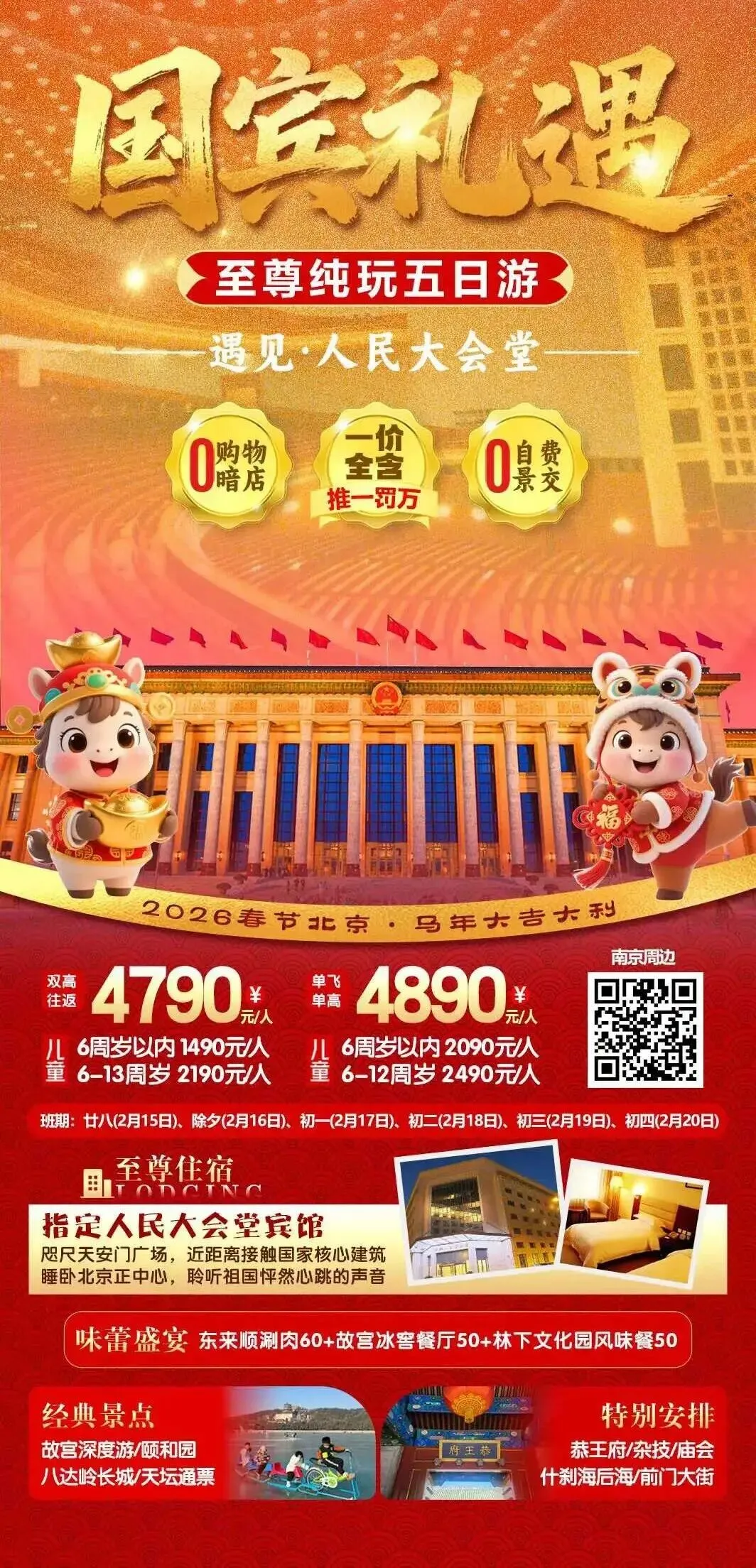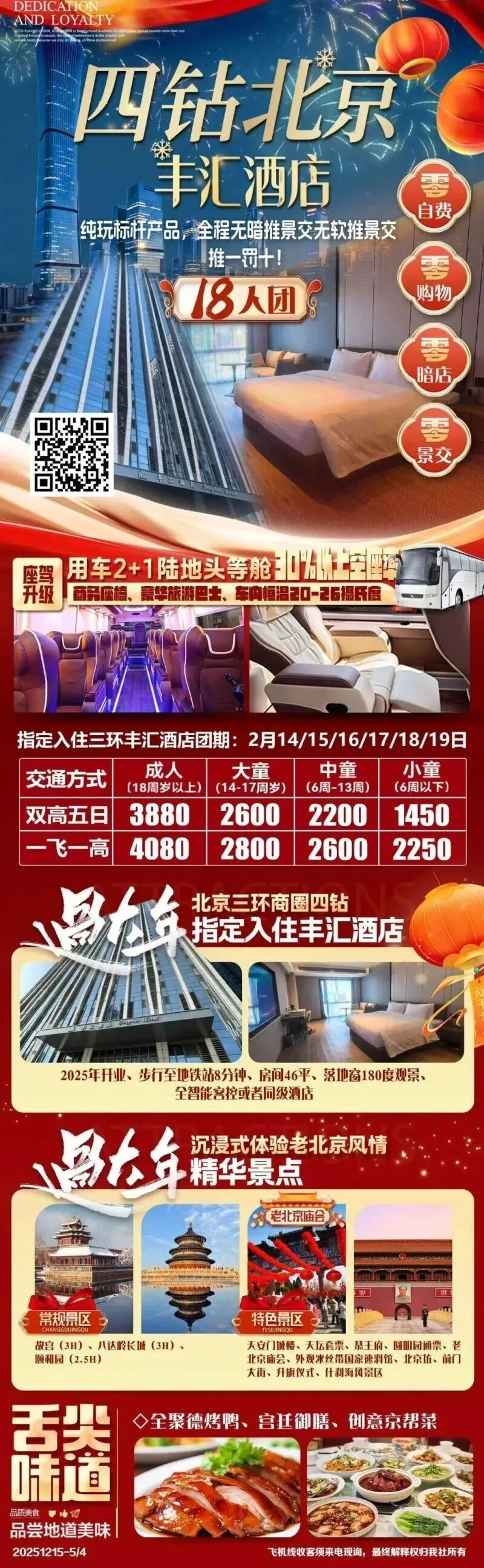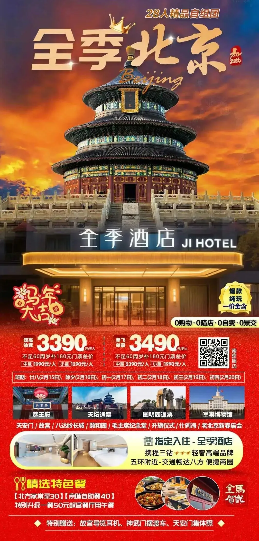 北京🌈【4钻北京】纯玩18人团2+1陆地头等舱