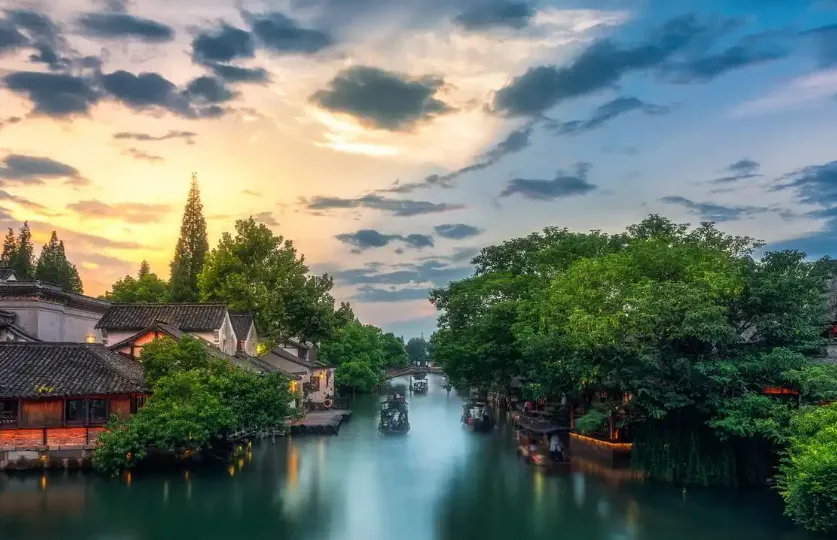 乌镇是典型的江南水乡古镇,分为东栅与西栅。东栅保留了明清时期的建筑格局,蓝印花布作坊、木心美术馆、昭明书院等文化景点散落其间;西栅则以夜景闻名,灯光映照下的古桥、流水、乌篷船如诗如画。每年世界互联网大会的举办,更让古典与现代在此交汇。