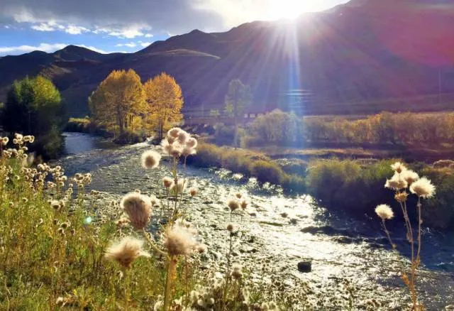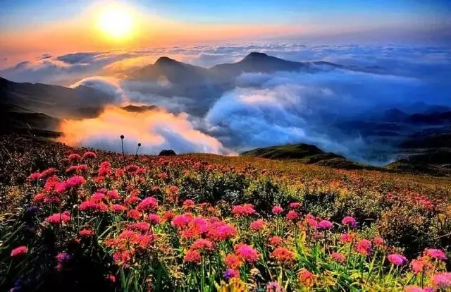 粉紫和明黄的野菊,青黛的山峰,五彩斑斓