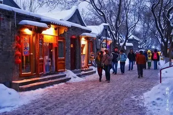 银装素裹的湖面与古色古香的胡同,