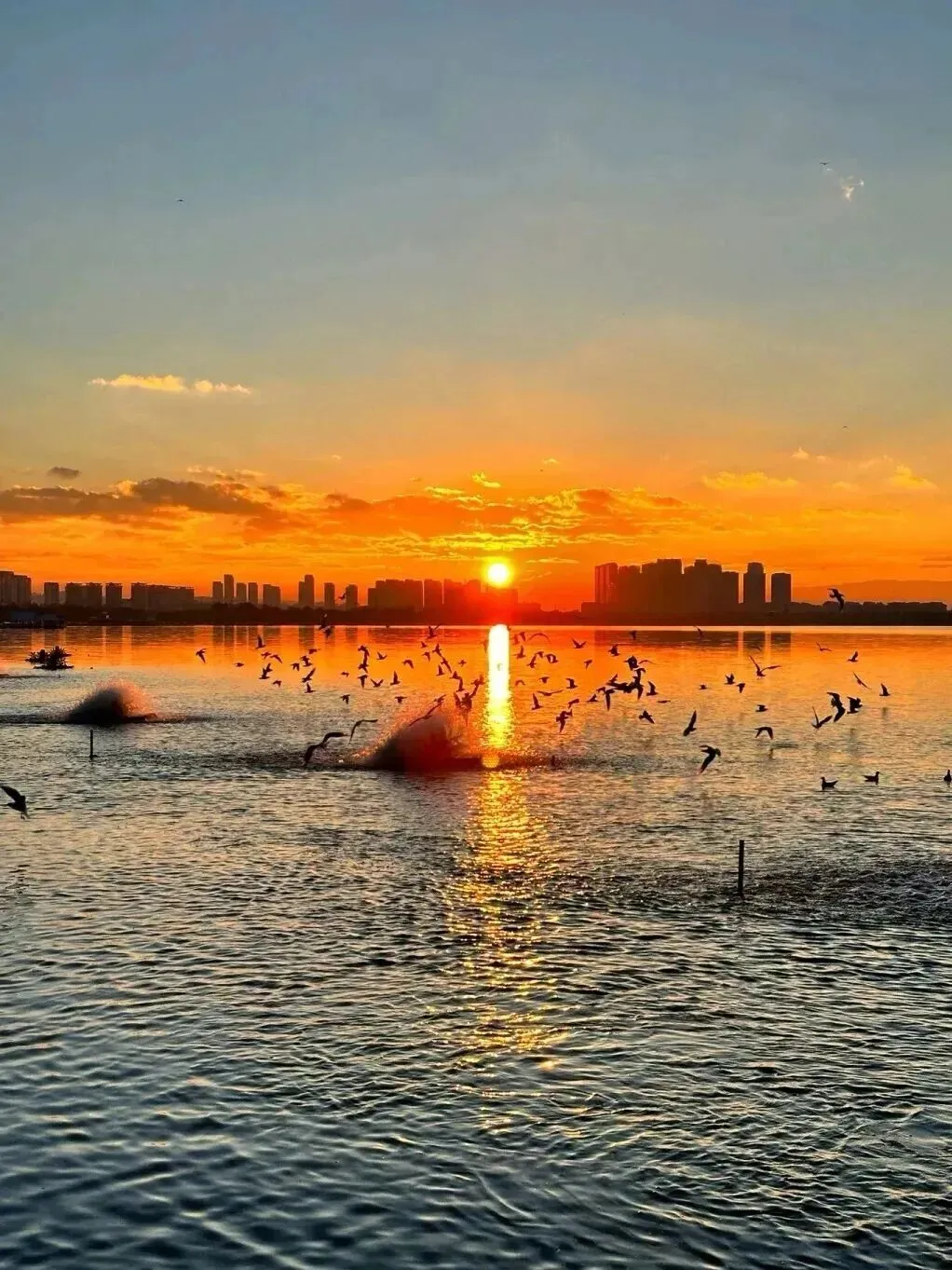 看太阳缓缓从滇池上空升起,