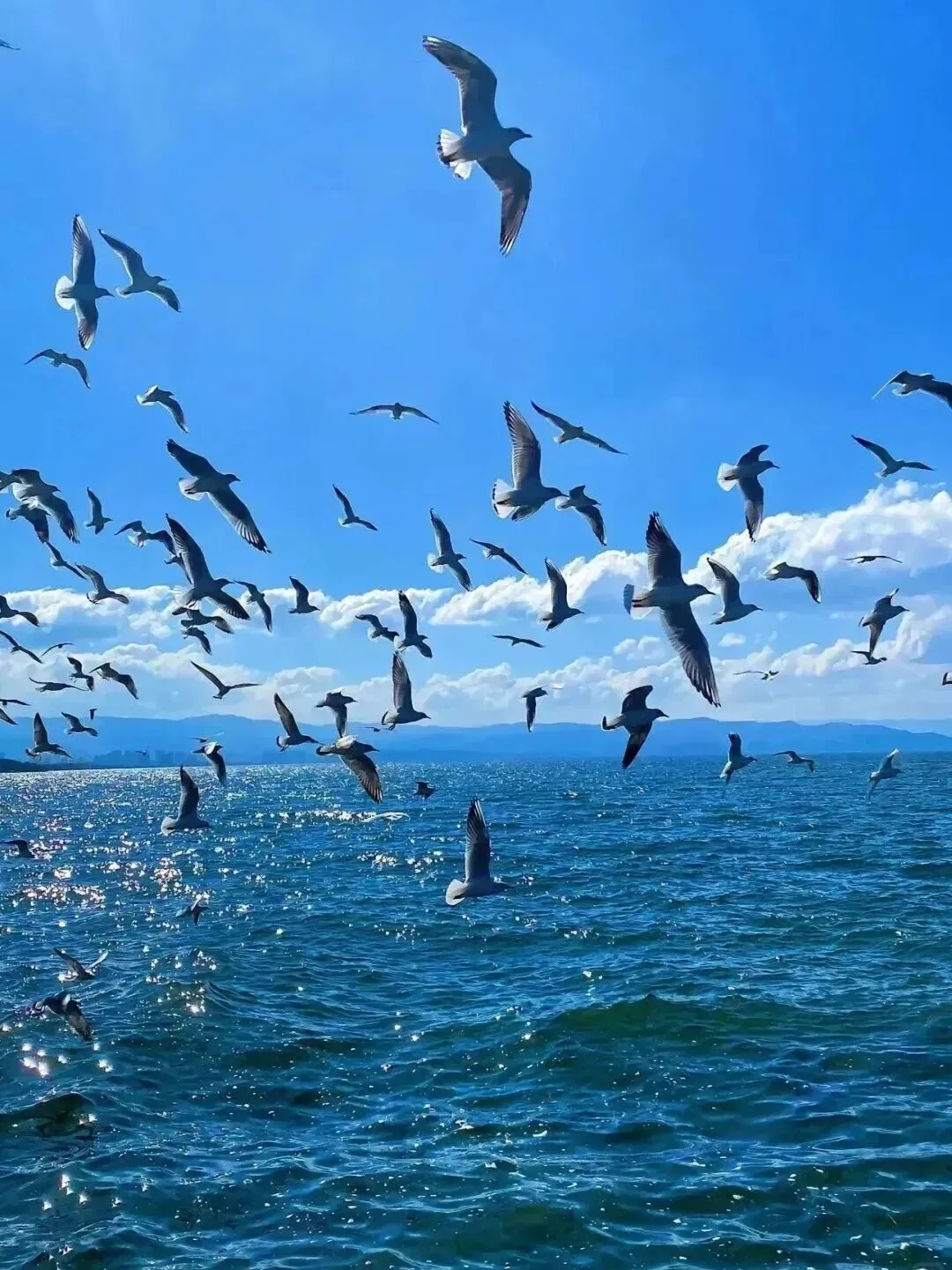 看海鸥在湖面嬉戏,