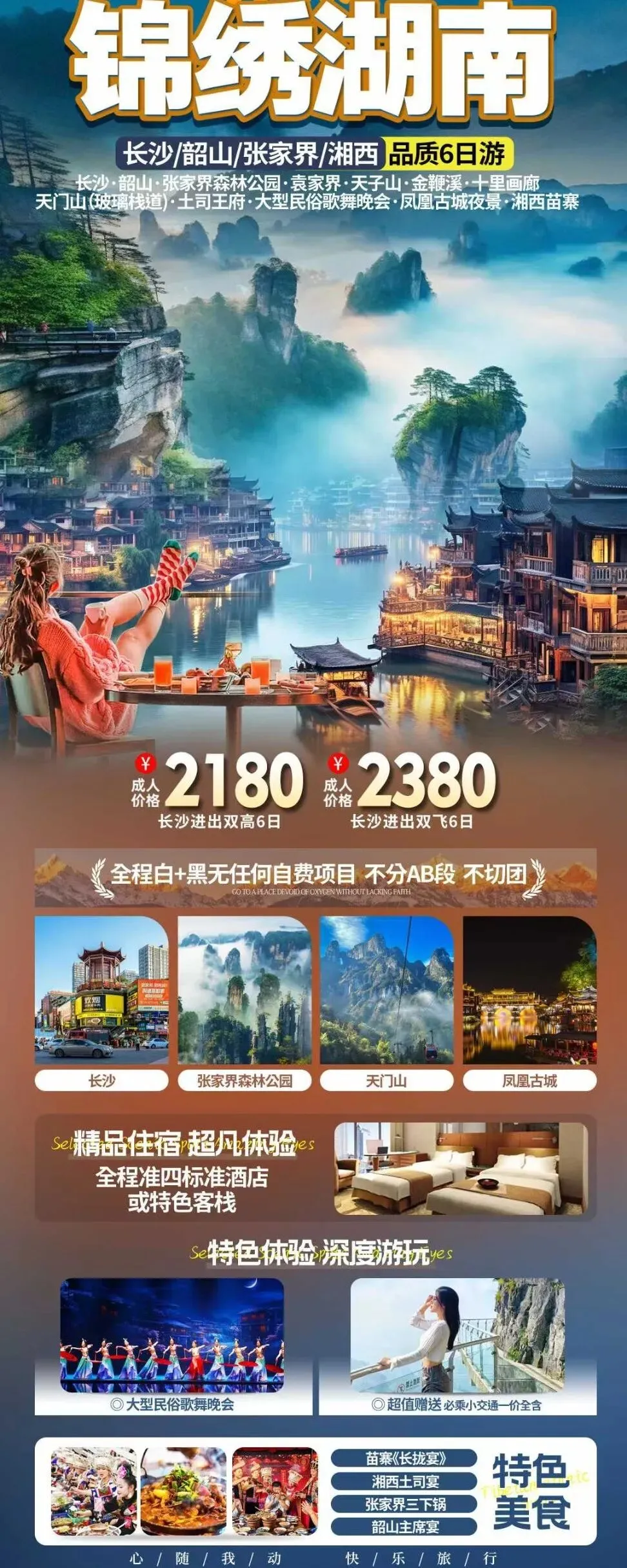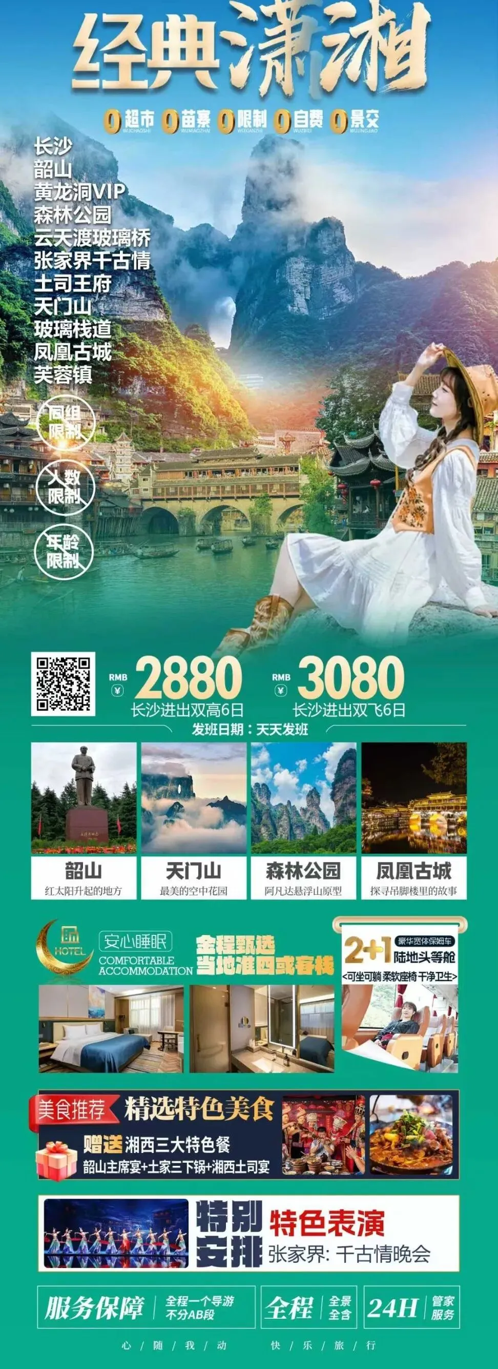 韶山 凤凰古城 芙蓉镇 张家界森林公园 宝峰湖 天门山,绿色深度纯玩