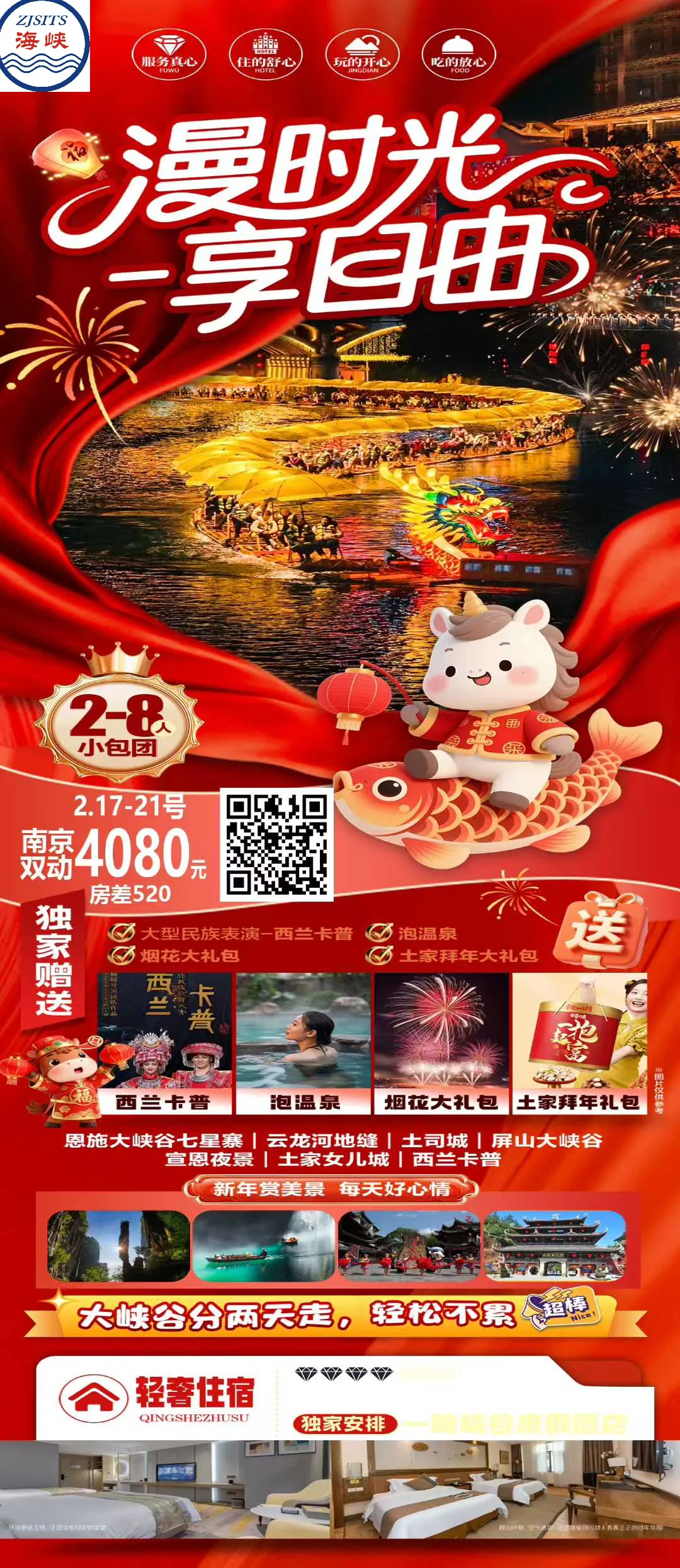 👑独家赠送大型民族表演-西兰卡普、泡温泉每人一次、烟花大礼包每人一份、土家大礼包每人一份!!