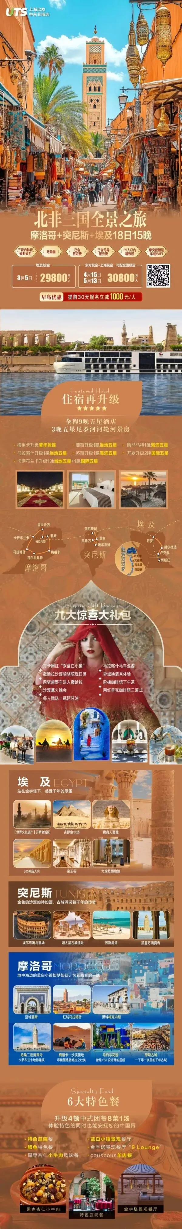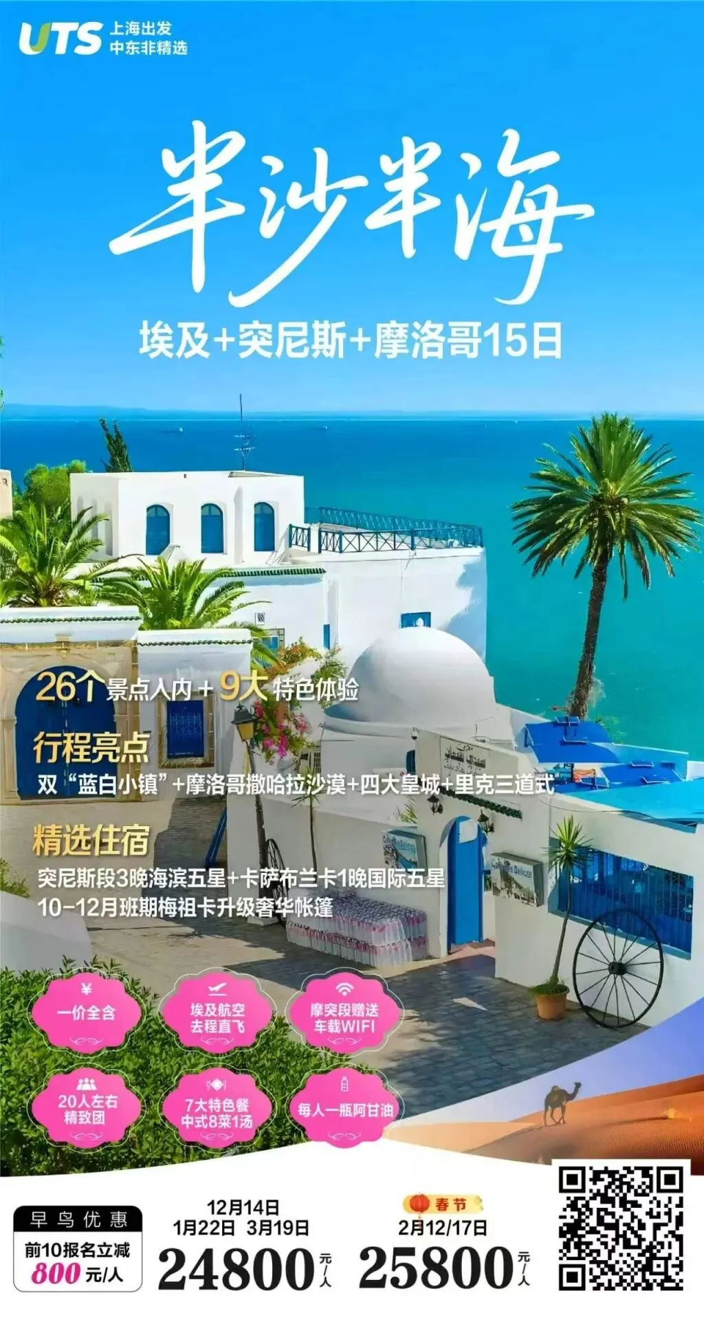 【北三非国】埃及+突尼斯+摩洛哥15天