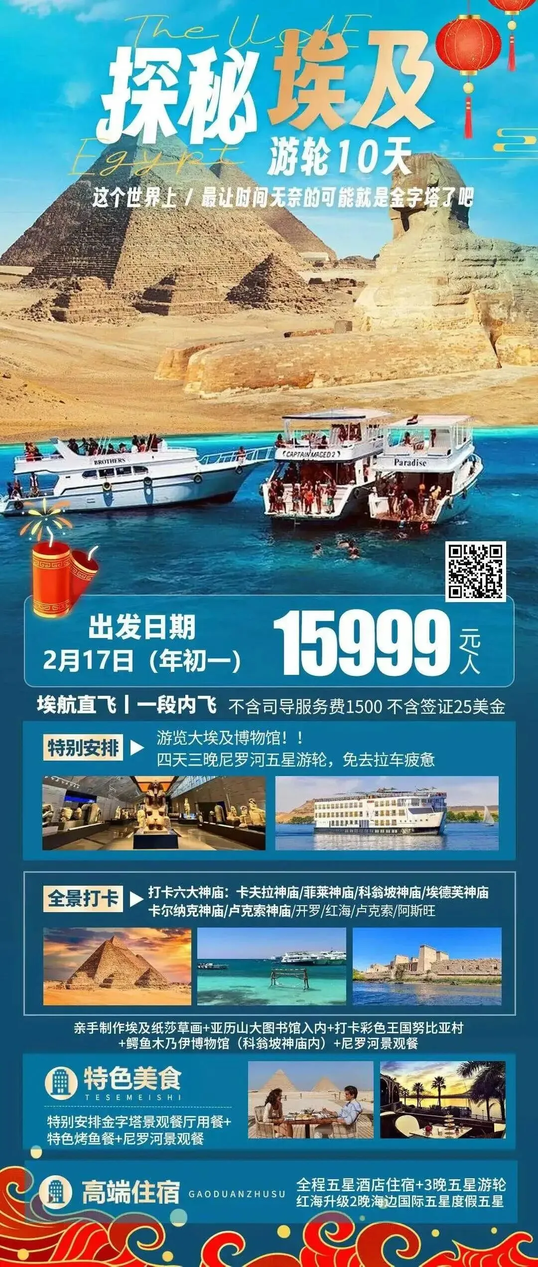 ✈️升级内陆飞机+尼罗河4天3晚五星游轮,避免舟车劳顿