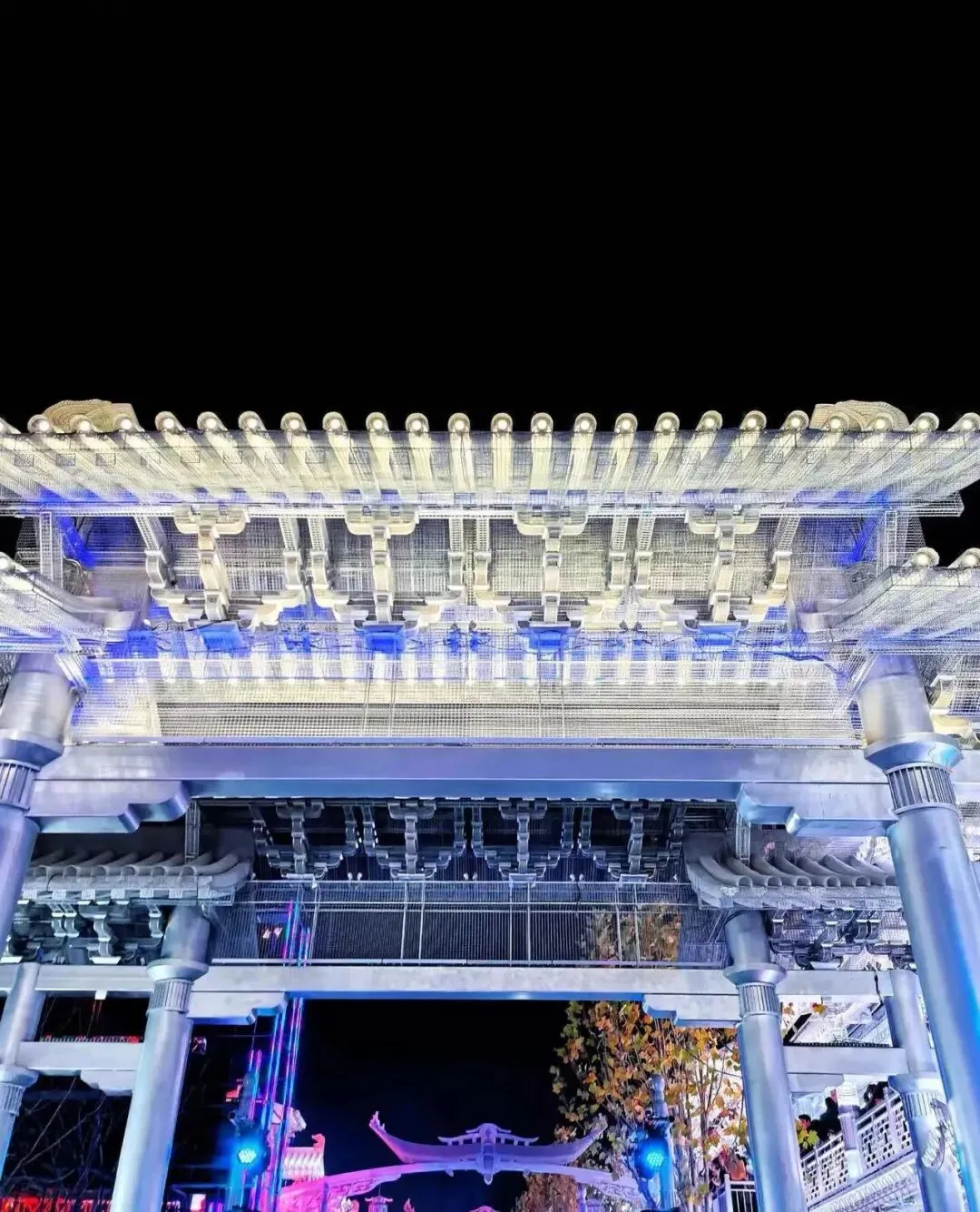 - 银丝古建:今年新景观,银色建筑线条感极强,白天拍建筑、晚上拍灯光,梦幻十足