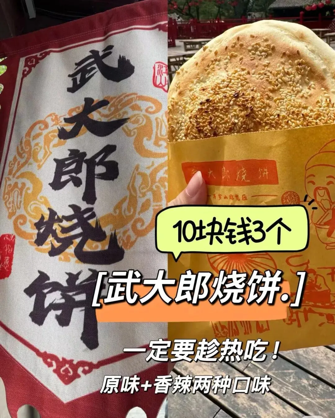 - ✅ 武大郎烧饼(3.5 元 / 个,王婆说媒对面):现烤现卖,外酥里嫩带微甜,可单吃或夹酱肉,老人小孩都爱吃