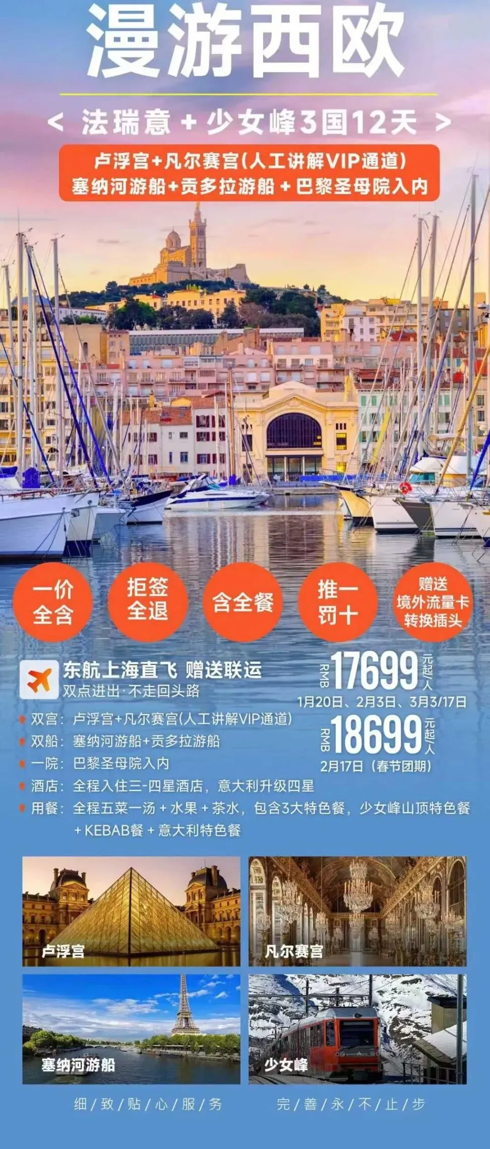 🍻卢浮宫、凡尔赛宫、新天鹅堡、黄金大运河、塞纳河游船、少女峰等