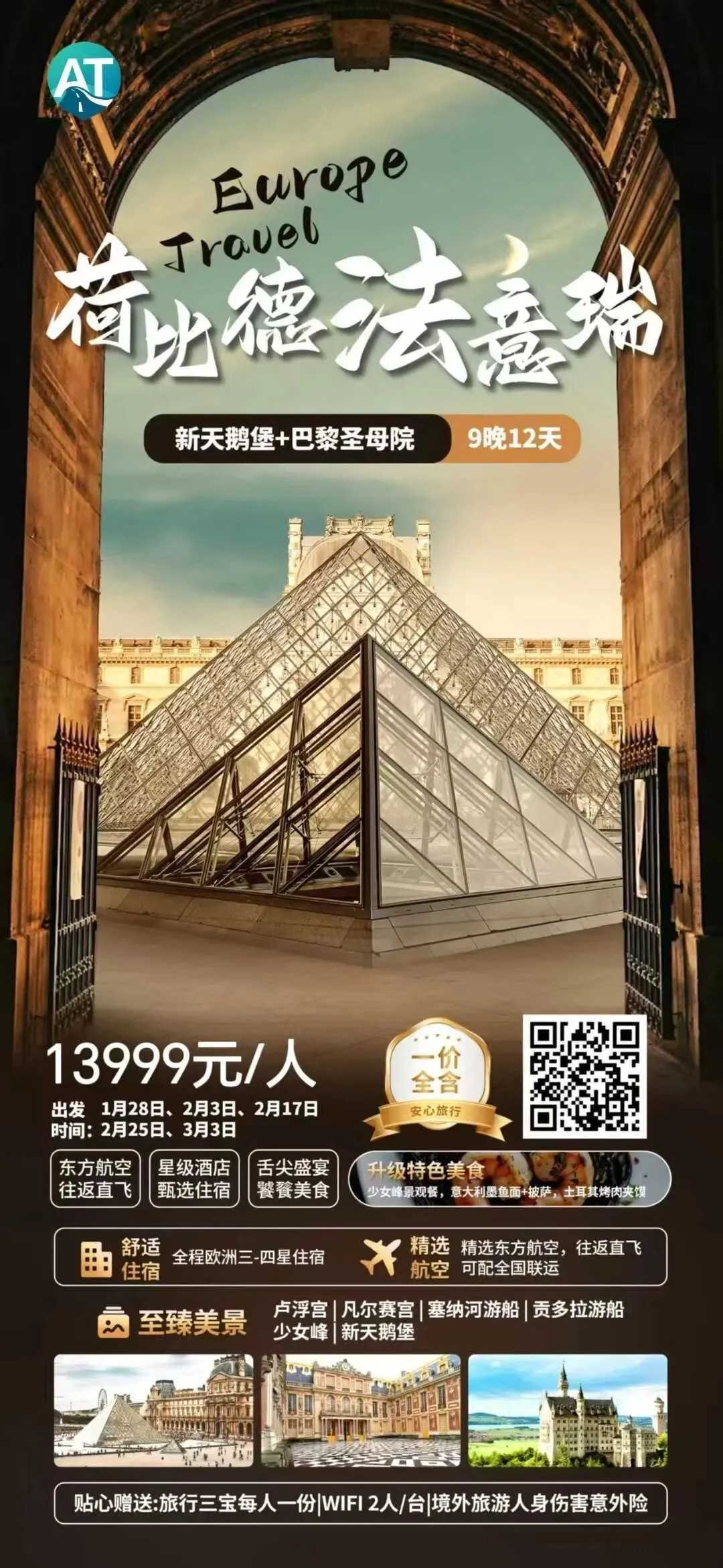 🌈【一价全含】荷比德法意瑞+新天鹅堡+巴黎圣母院12天9晚