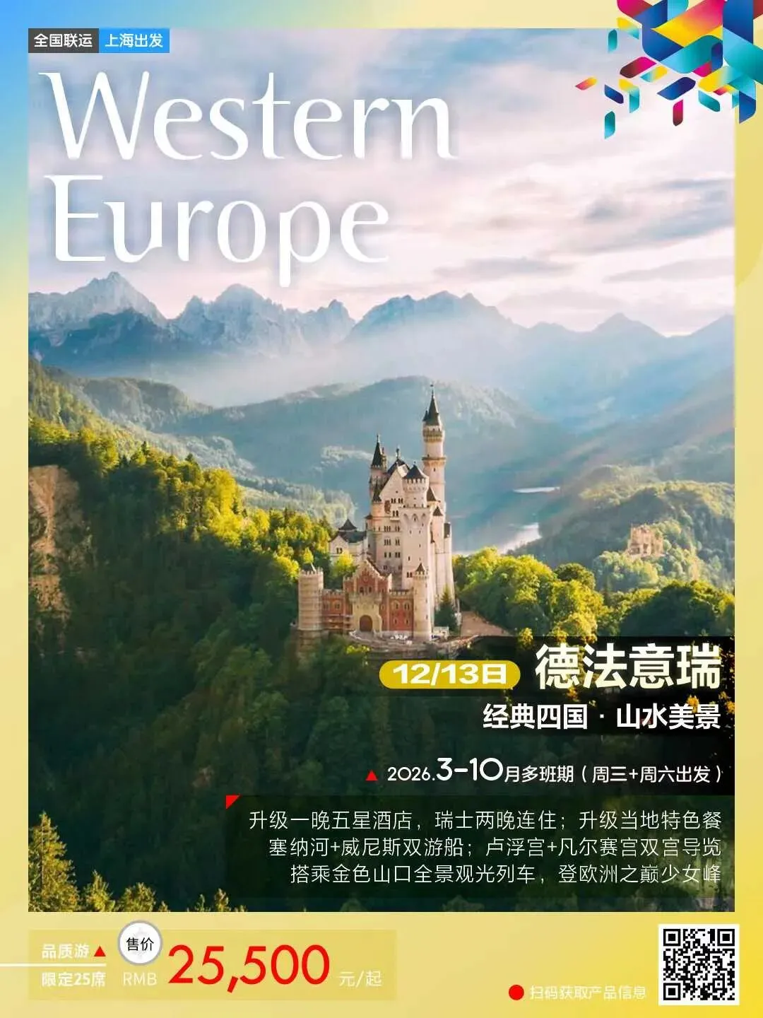 🦄 德法意瑞+新天鹅堡+金色山口+少女峰12天