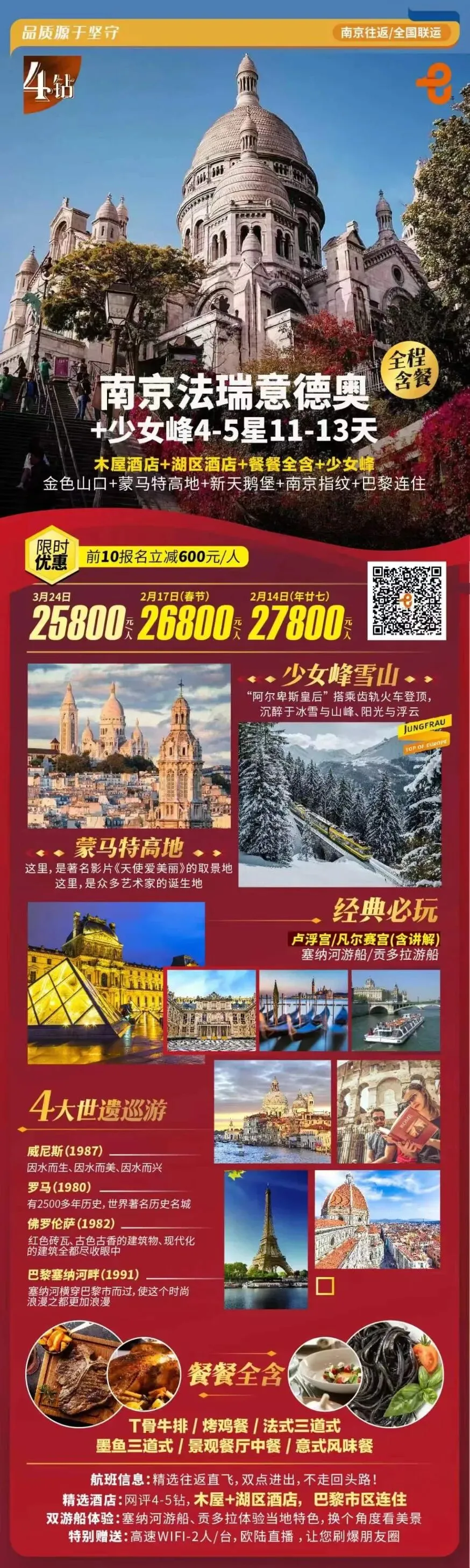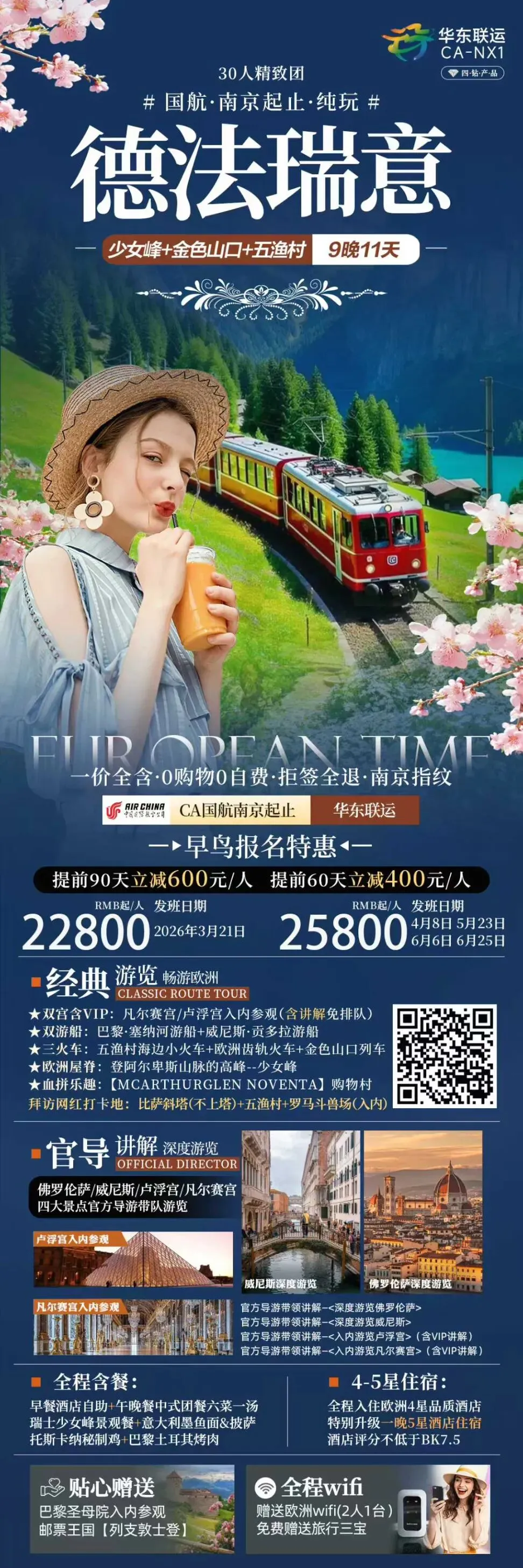 👩🏻🏫春节南京直飞巴黎德法意瑞