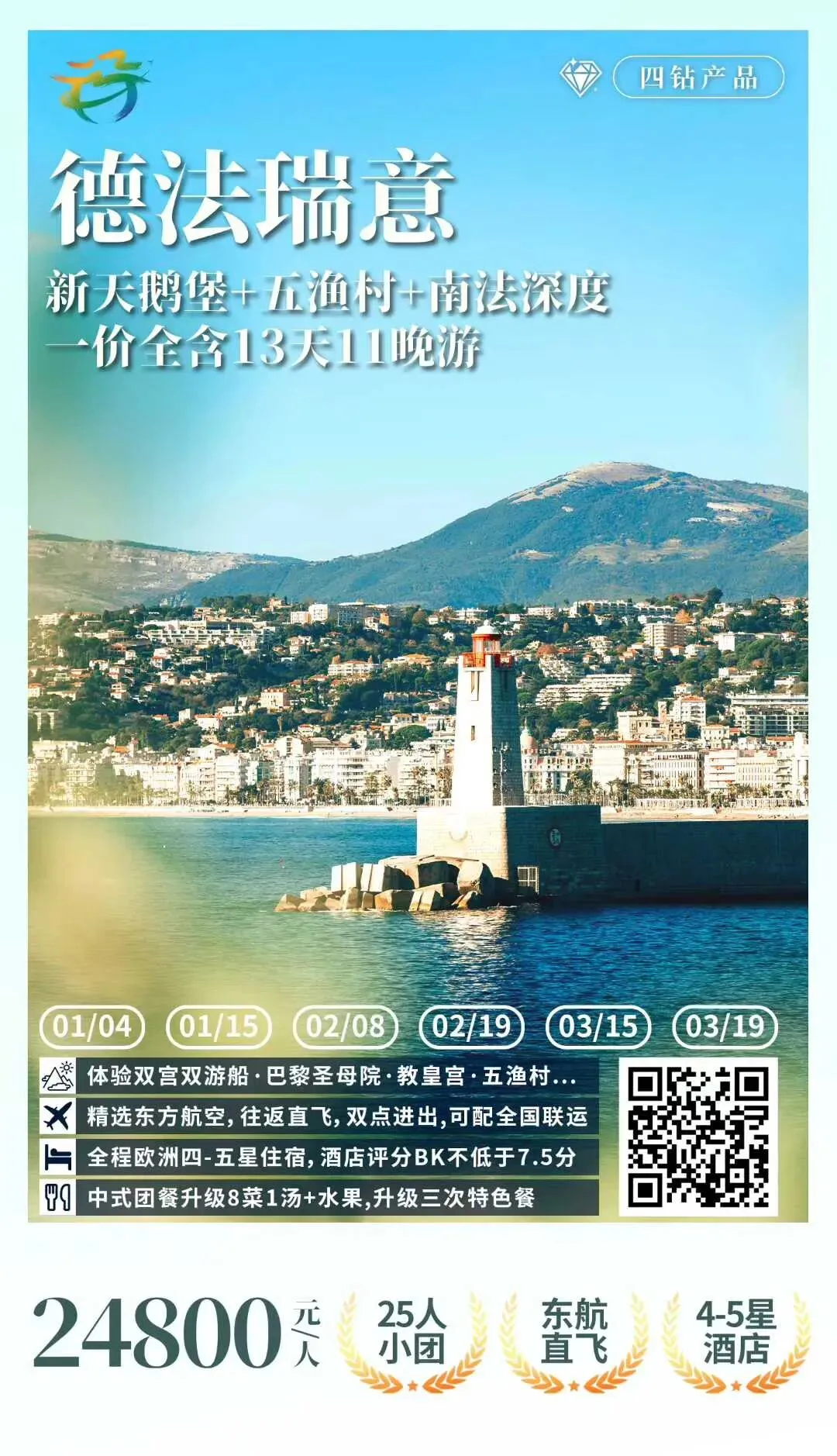 【X1·25人小团·0自费0购物】德法瑞意+南法深度13天11晚