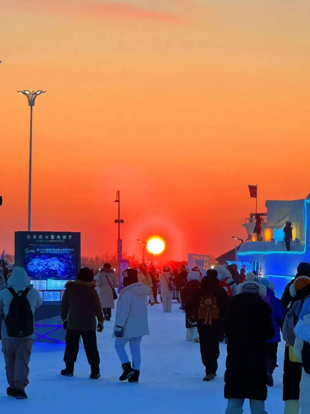 建议下午3-4点入场,既能看白天的冰雕又能等到亮灯(16:30左右)。一定要玩超长冰滑梯!记得穿最厚的羽绒服+贴暖宝宝