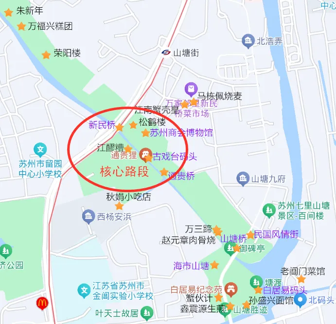 山塘街即七里山塘景区,位于苏州古城的西北部,为中国历史文化名街、国家AAAA级景区。