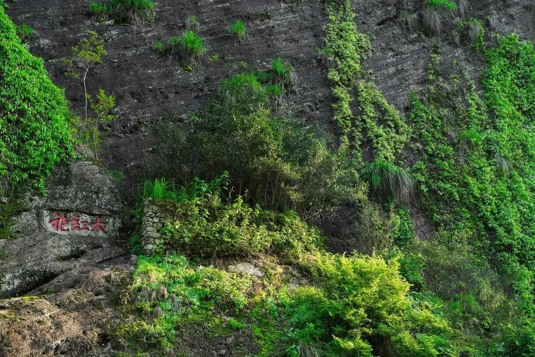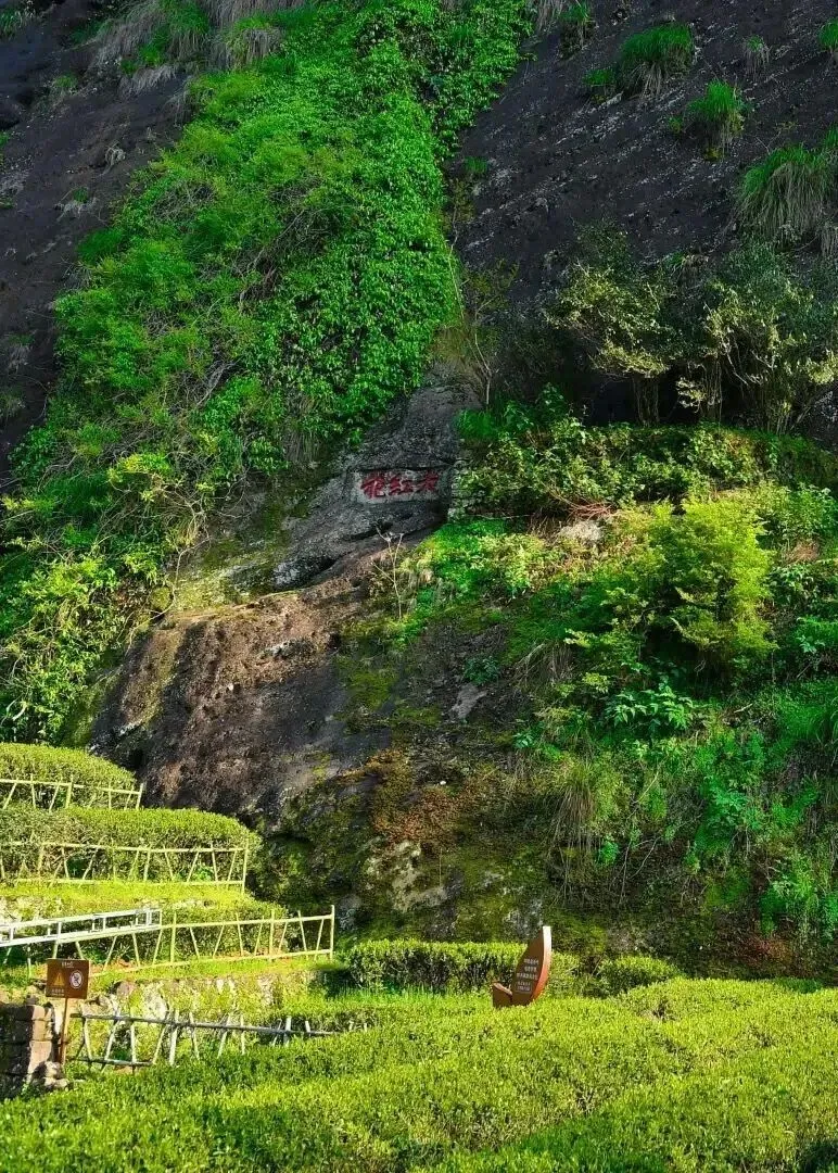 大红袍景区因出产武夷山最著名的大红袍茶而得名,景区的核心景观之一就是大红袍母树,它位于岩腰的盆式茶园内,共6株,外砌石堰加以护卫,因而倍显珍贵;岩壁上镌刻“大红袍”三字。