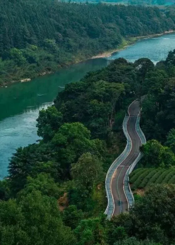 这是一条被誉为“百里画廊”的漫游道,以生态文明为依托,像一条玉带沿着崇阳溪,蜿蜒66公里,北起崇安大桥,南至南林大桥,串起大武夷自然与人文精髓。