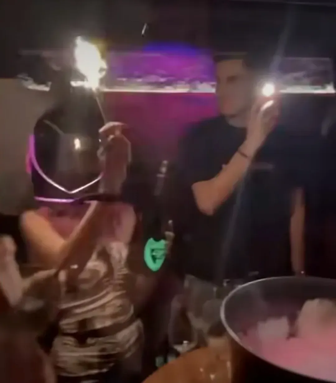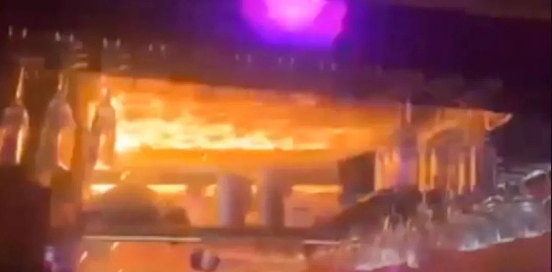 当时一名服务员手持燃烧的香槟瓶,香槟火花接触到酒吧的木制天花板,迅速引发火灾