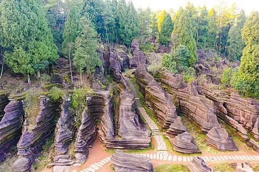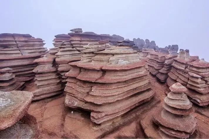 简介:国家地址公园。奥陶纪海底形成的红色石林!晴天艳如火烧,雨天黑如泼墨,穿白裙在“石莲花”前拍科幻大片。
