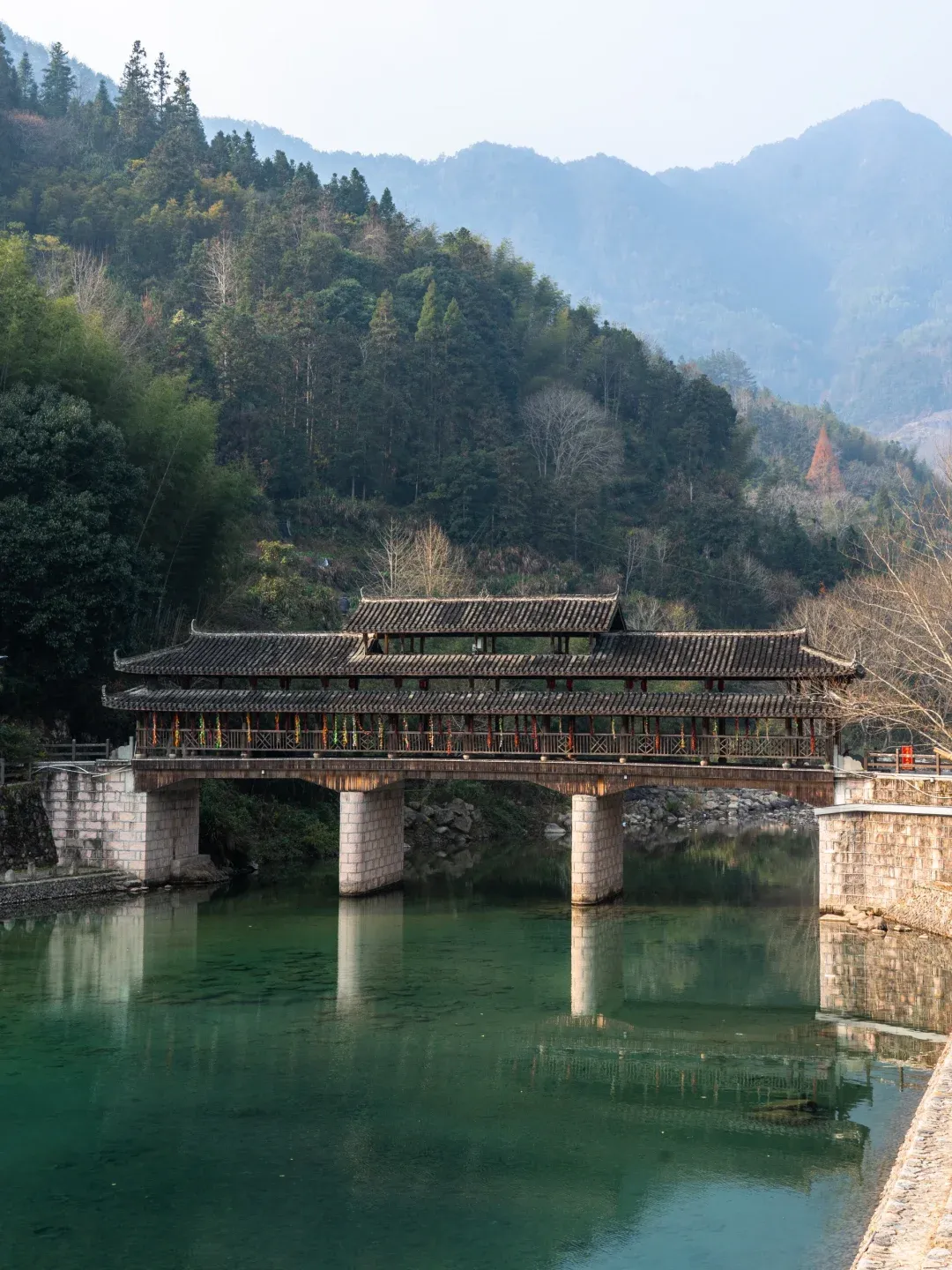 从博物馆出来的鹤溪廊桥横跨两岸,走在上面仿佛穿梭在千年畲族历史中