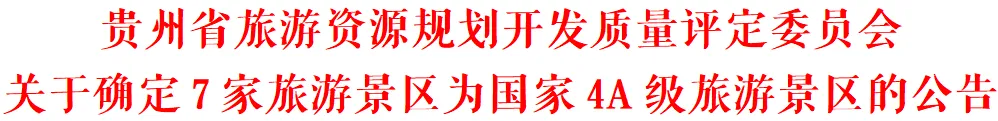 根据中华人民共和国国家标准《旅游景区质量等级划分》和《贵州省旅游景区质量等级管理办法》,经有关市(州)文化和旅游部门推荐,贵州省旅游资源规划开发质量评定委员会按程序组织综合评定和会议审定,并于2025年12月22日完成公示,确定以下7家旅游景区为国家4A级旅游景区。名单如下: