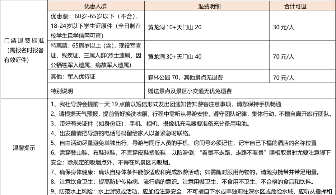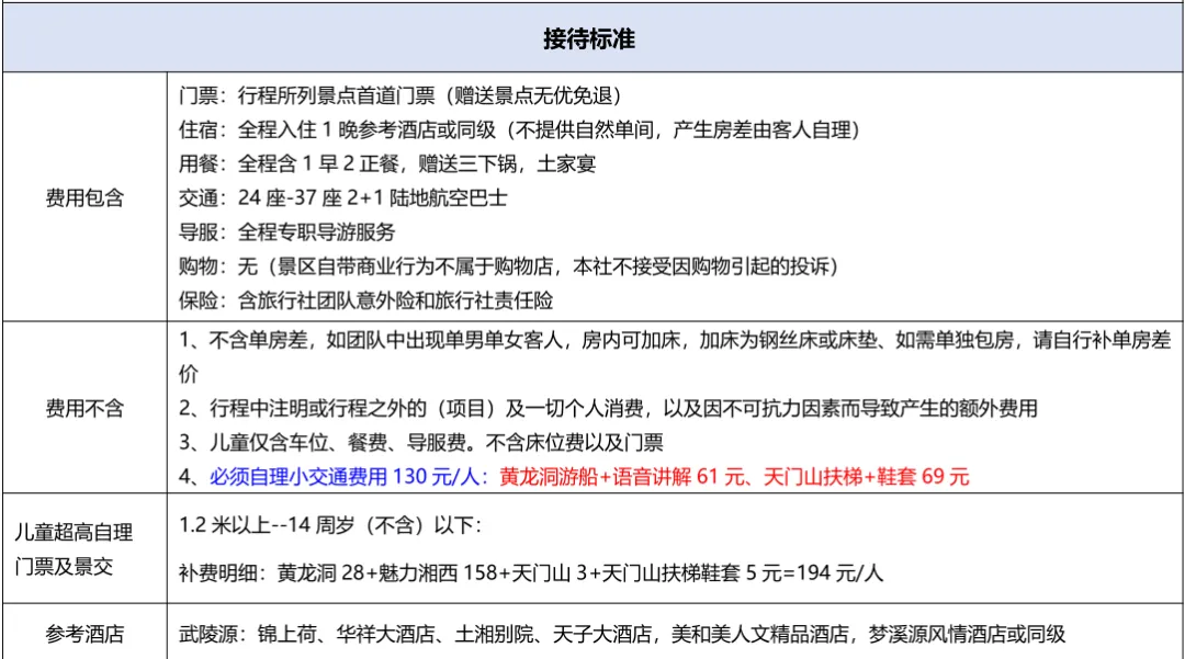 备注:特惠版需自理景区小交通