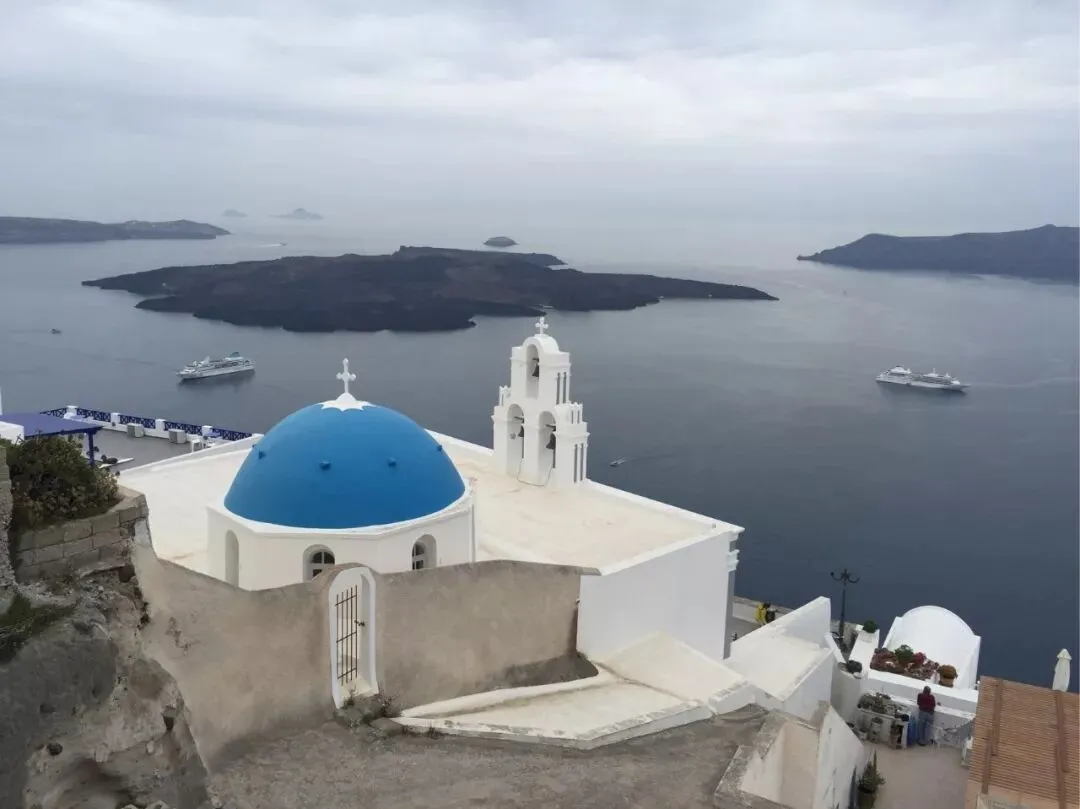 海天一色的蓝映照着圣托里尼独有的蓝顶白房子,完美符合了人们对希腊风情的想象。 看看明信片上的圣托里尼,你就能理解什么是浪漫主义;亲自来圣托里尼转转,你就能明白什么叫现实主义。