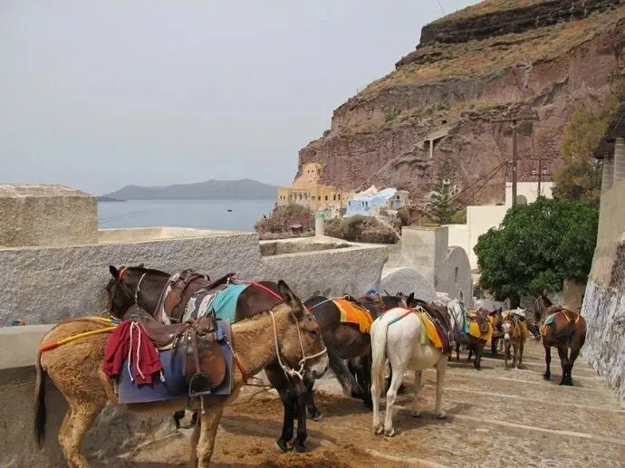 世界上最明朗的蓝与最纯洁的白在哪里? 在手机滤镜里。 从小镇走到海边的网红拍照点,需要穿越的除了人潮,还有驴群。在这个岛屿小城,它们是爬上爬下运输货物和游客的主力。