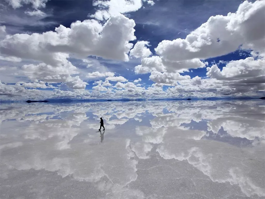 首先,要在每年的6-9月来,此时是丰水期,盐湖水量充足——这是拍出“天空之镜”最重要的前提条件。 其次,要趁好天气来。阴雨乃至多云的天气,只能拍到灰蒙蒙的一片盐滩,而且雨水会稀释水中的盐层,露出泥地,画面一言难尽。