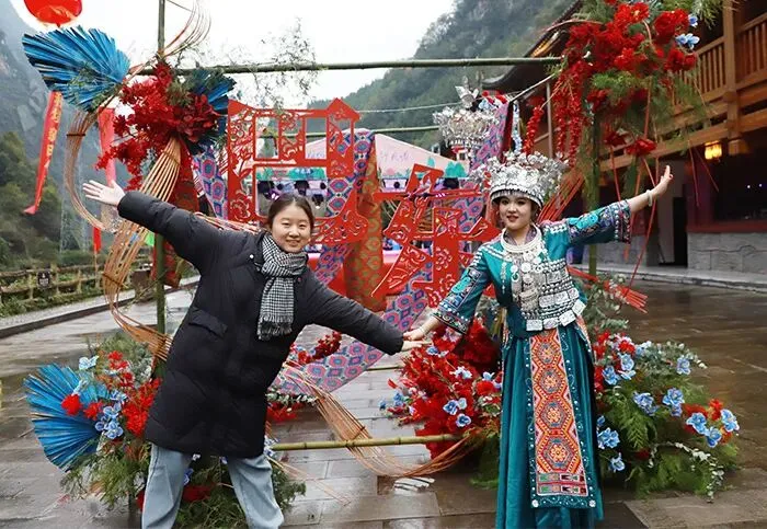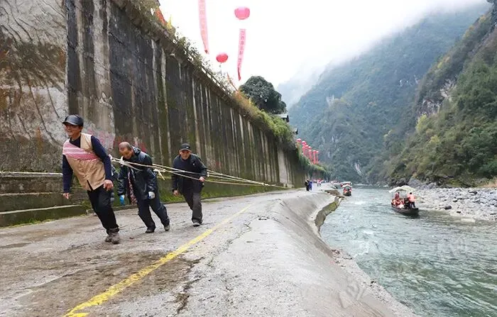 冬雨淅沥,挡不住游客们游览神农溪的喜悦。满载游客的游船从县城神农溪旅游码头缓缓启航,拉开了跨年活动的序幕。神农溪两岸青山如黛,溪水碧波荡漾,游客们饱览神农溪绝美风光,一路欢声笑语。在神农溪纤夫文化走廊景区,拦门酒表演温情上演,身着土家盛装的姑娘们端着美酒,唱起迎客歌谣,为游客系上祈福丝带。豌豆角木船拉纤体验处,大家有序乘船,逆流而上,亲身感受纤夫文化的独特魅力。