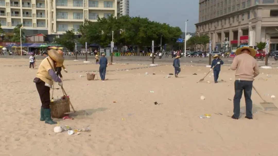 跨年夜后,海陵岛景区快速恢复洁净沙滩