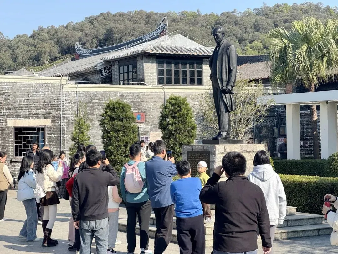 梁启超故居成为不少亲子家庭出游、汲取精神养分的热门选择。孩子们在家长的陪伴下,探寻梁启超先生的生平事迹,感受家风传承的力量。