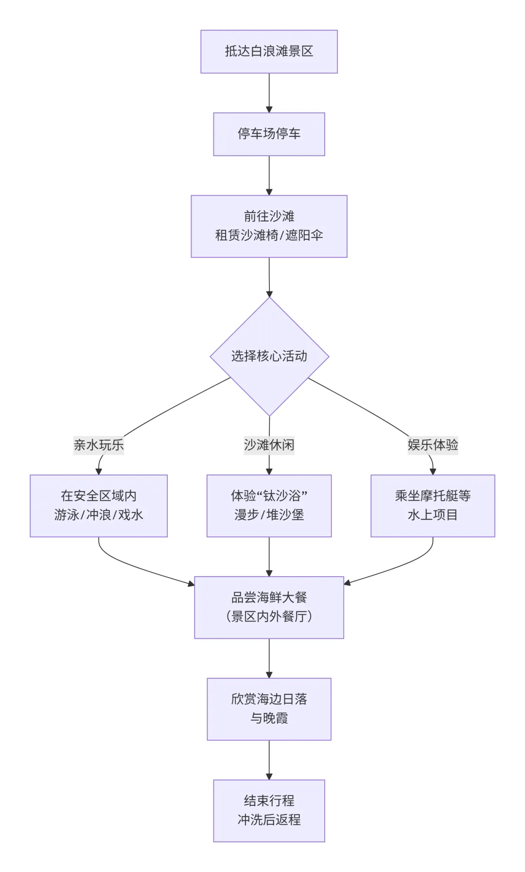 下图清晰地展示了在白浪滩景区从抵达至离开的完整游玩流程与体验项目: