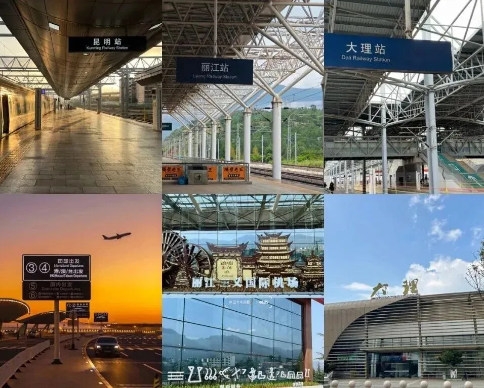动车:昆明→大理→丽江已通,2-3 小时可达,节日需提前到站。