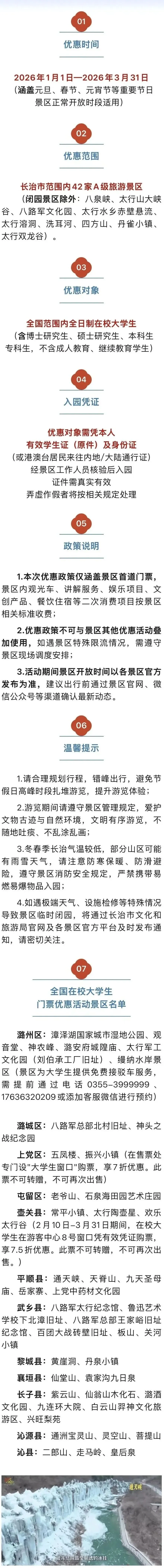 面向全国在校大学生!襄垣县2家景区有优惠!
