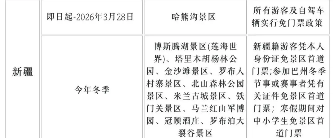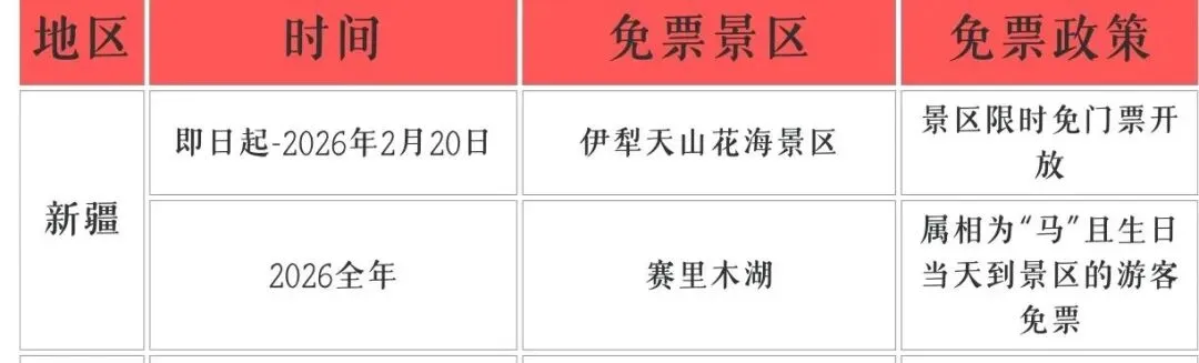 ✅免票时间: 博斯腾湖景区等地,今年冬季 伊犁天山花海景区,即日起-2026年2月20日 赛里木湖, 2026年全年 ✅免票条件