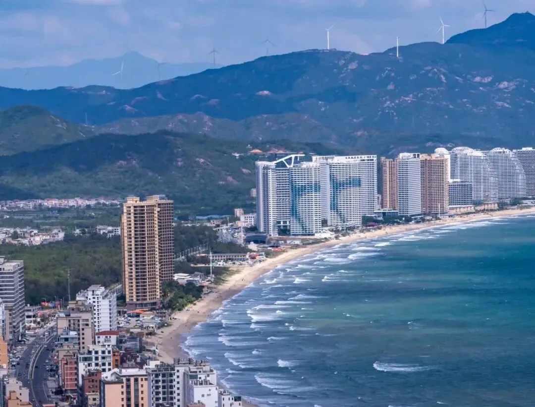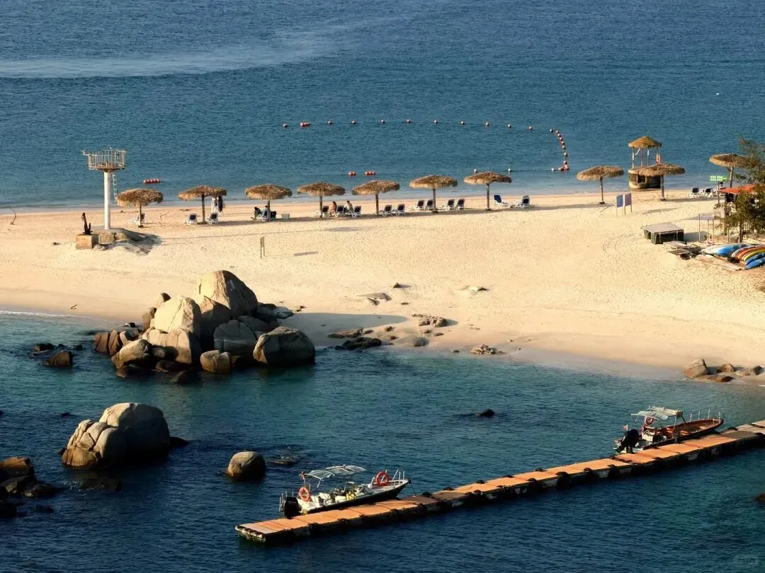 因形状鸟瞰像两轮新月而得名。左湾水平如镜,右湾波涛汹涌,一静一动,对比鲜明。这里沙滩细腻,海水清澈,是观赏日落和海上活动的理想地点。登上大星山观景台,双月湾全景尽收眼底,景象极为壮观。周边酒店、民宿成熟,海鲜美食诱人,适合度假休闲。