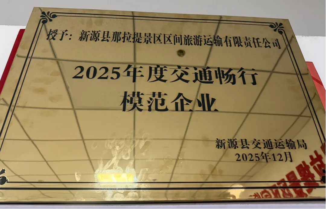 近期,在新源县交通运输局2025年第四季度安全生产会议暨2026年元旦春节“两节”安全生产部署会上,新疆文旅发展股份公司旗下新源县那拉提景区区间旅游运输有限责任公司被评为“2025 年度交通畅行模范企业”。