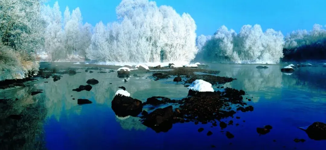 库尔滨雾凇规模宏大,库尔滨水电站下游沿岸有长达15公里的雾凇林,面积达300平方公里。这里的雾凇形成周期长,观赏期从11月下旬至次年3月,每天的停留时间多达10小时,且雾凇厚度大、形态饱满,被誉为“永不落幕的雾凇盛宴”。每年12月中旬到次年2月末是观赏库尔滨雾凇的最佳时期。