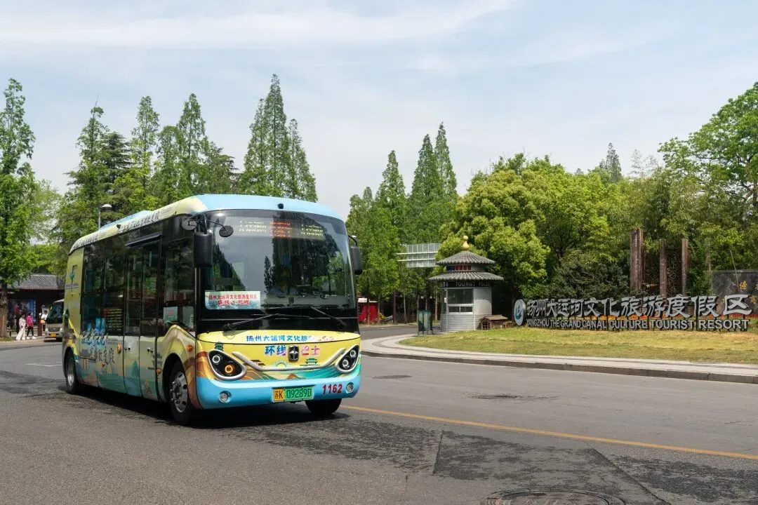 在扬州景区,你可以乘坐扬州大运河文化旅游度假区环线巴士,也可以乘坐茶咖巴士,在风景里穿行,而这些巴士本身,也是一道流动的风景。