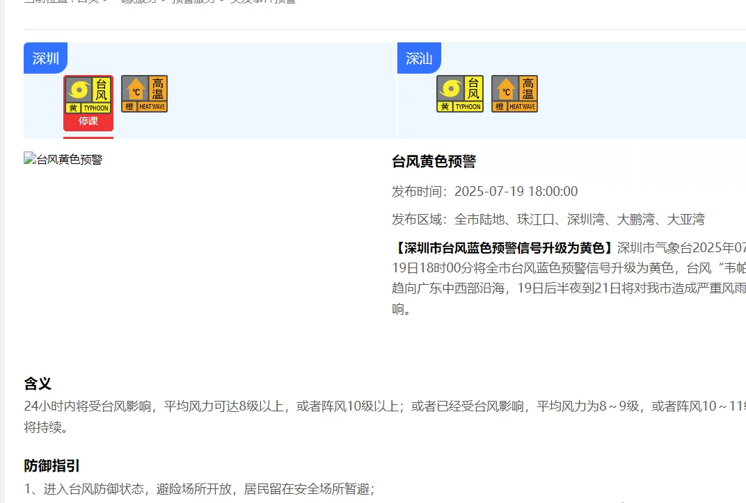 台风黄色预警