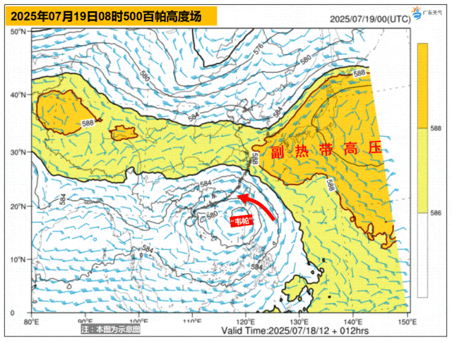 台风“韦帕”将沿着副热带高压南侧的气流