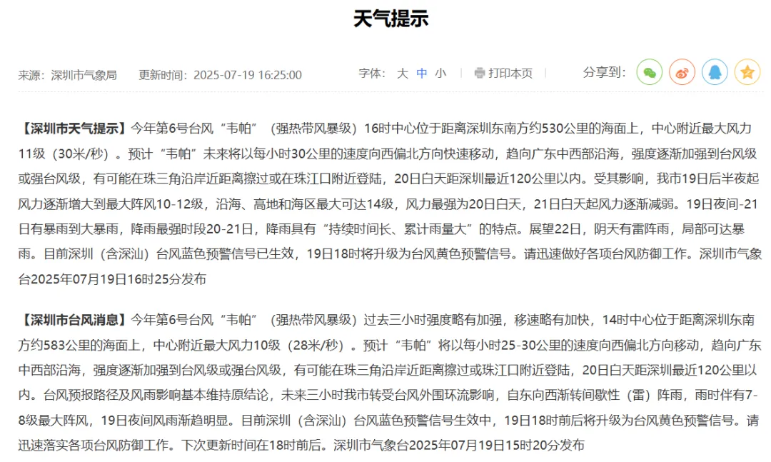 台风最新消息、台风对深圳的影响等信息