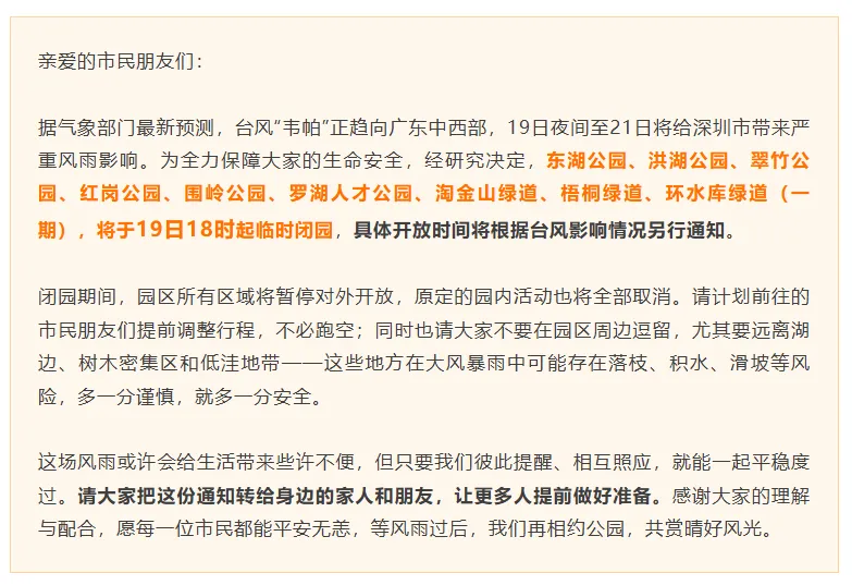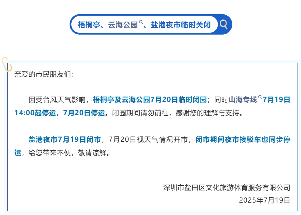 深圳部分景区关闭